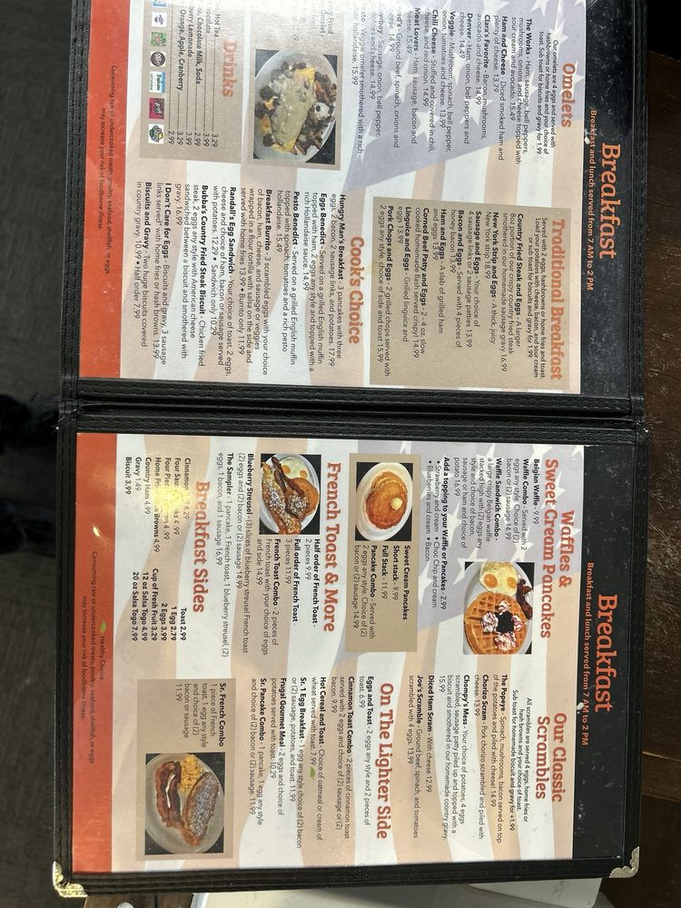 This is HUGE !! This favorite is of our homemade JUMBO biscuits filled will cheese, eggs any style a country fried steak and smothered in sausage gravy and choice of side