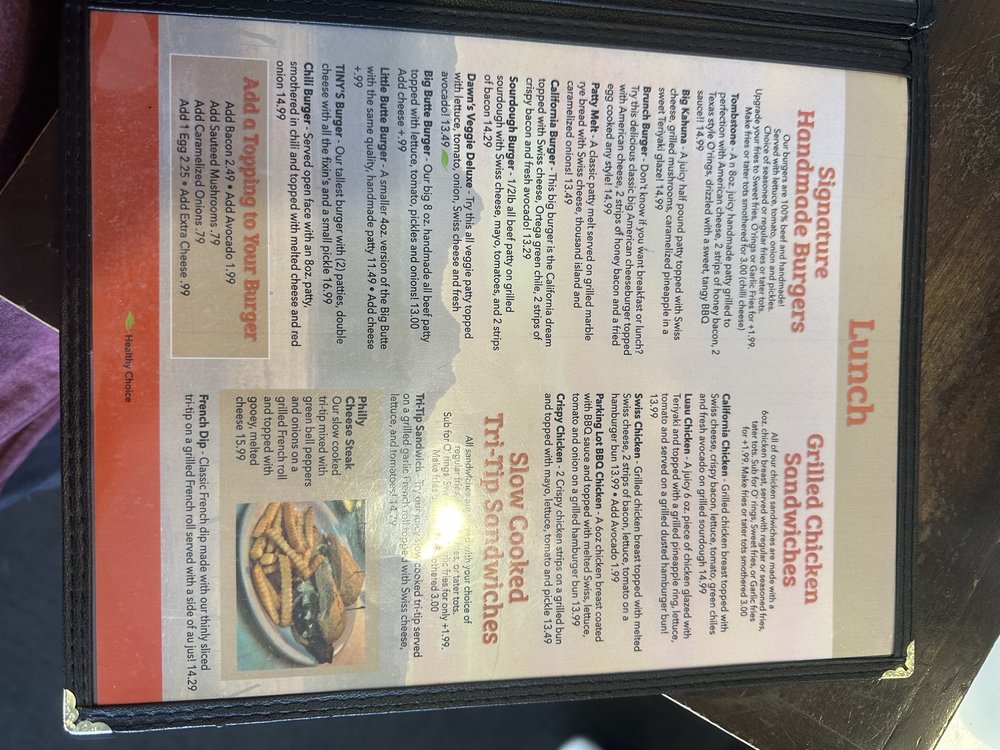 Bacon, Tomato, Avocado, Ortega chiles. American cheese (and your choice of ham, Or turkey) on grilled sourdough. upgrade to trip-tip