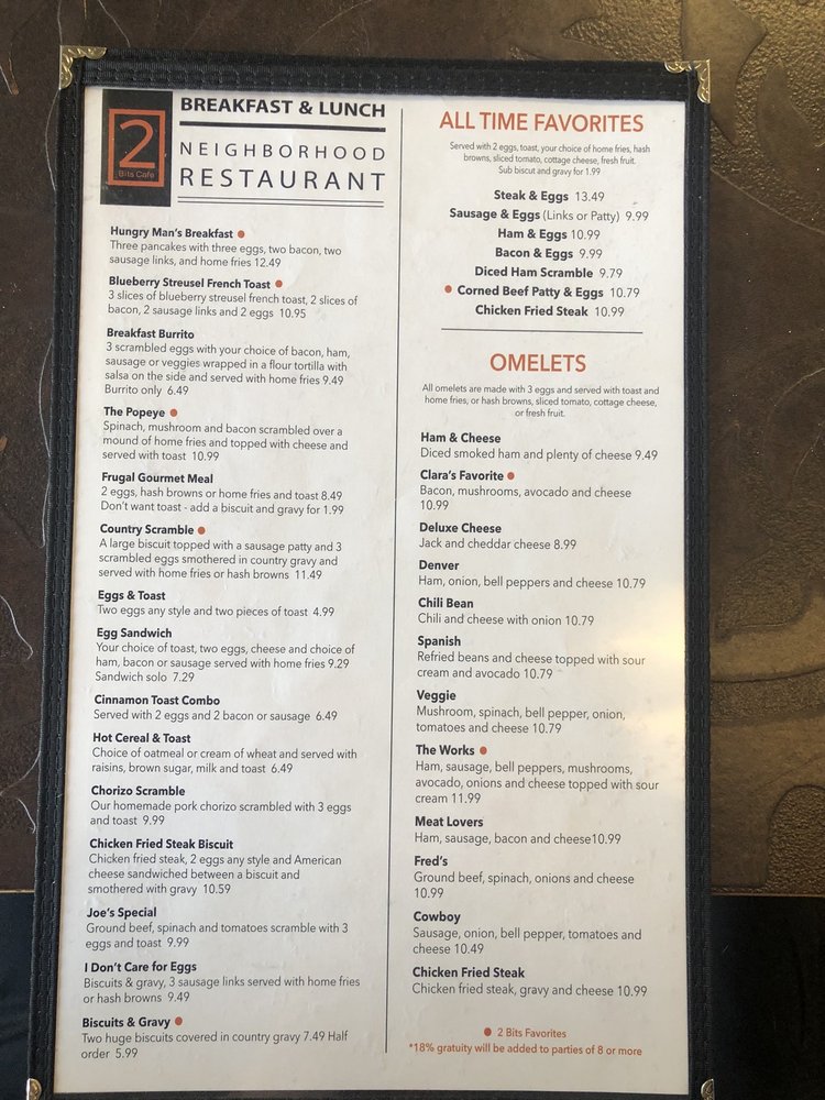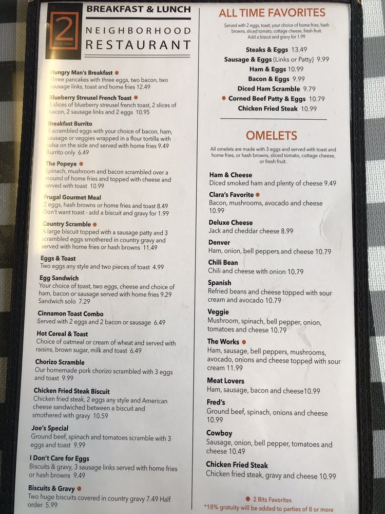 Introducing 2 Bits Cafe, a charming American breakfast and brunch spot located in Yuba City, CA. With a cozy atmosphere and a wide range of menu options, this cafe offers takeout, delivery, and even catering services. Vegetarian options are plentiful, making it a great choice for all dietary preferences. Customers rave about the generous portions and friendly service, with highlights including the delicious biscuits and gravy made from scratch, mouth-watering omelettes, and fluffy French toast. The cafe exudes a nostalgic diner vibe, with waitstaff greeting locals by name and a welcoming ambiance that transports diners back in time. Whether you're in the mood for a hearty breakfast or a satisfying lunch, 2 Bits Cafe is a must-visit destination for foodies in the area.